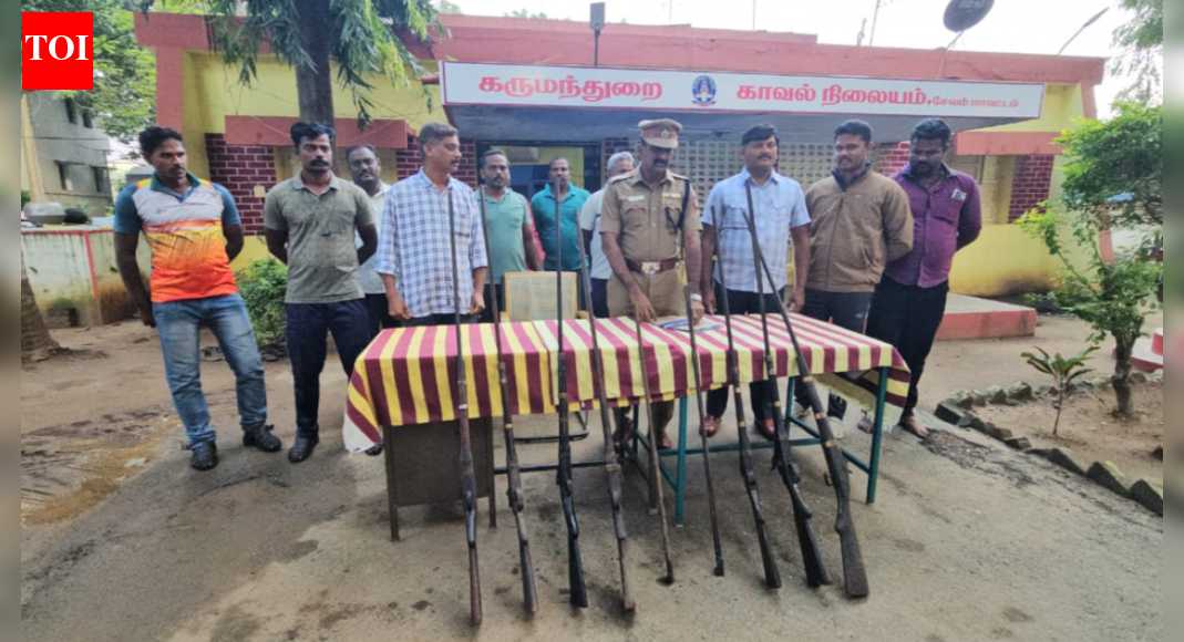 50+ min ago (204+ words) SALEM: The Salem district police seized nine country-made firearms from villages near Karumandurai on Tuesday. The seizures were made in searches cond. SALEM: The Salem district police seized nine country-made firearms from villages near Karumandurai on Tuesday The seizures were made in searches conducted by a special team after a farmer was shot dead in Kirangadu on Nov 22 with a country-made gun over a property dispute, said Salem district superintendent of police Gautam Goyal.The team conducted the searches as directed by western zone police IG T Senthil Kumar and Salem range DIG (incharge) and Salem city police commissioner A K Giri The team comprised DSPs Somasundaram (Salem headquarters), P Sathyaraj (Attur) and Suresh (Vazhappadi) and inspectors Shanmugam (Thammampatty) and Kamalakannan (Karumandurai) The SP advised people to hand over the illegal firearms to police "Legal action will not be taken…...